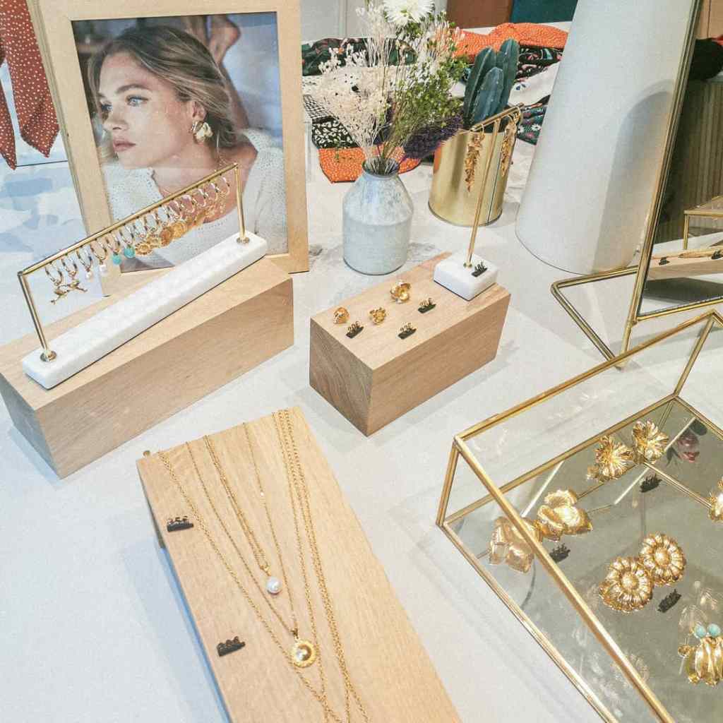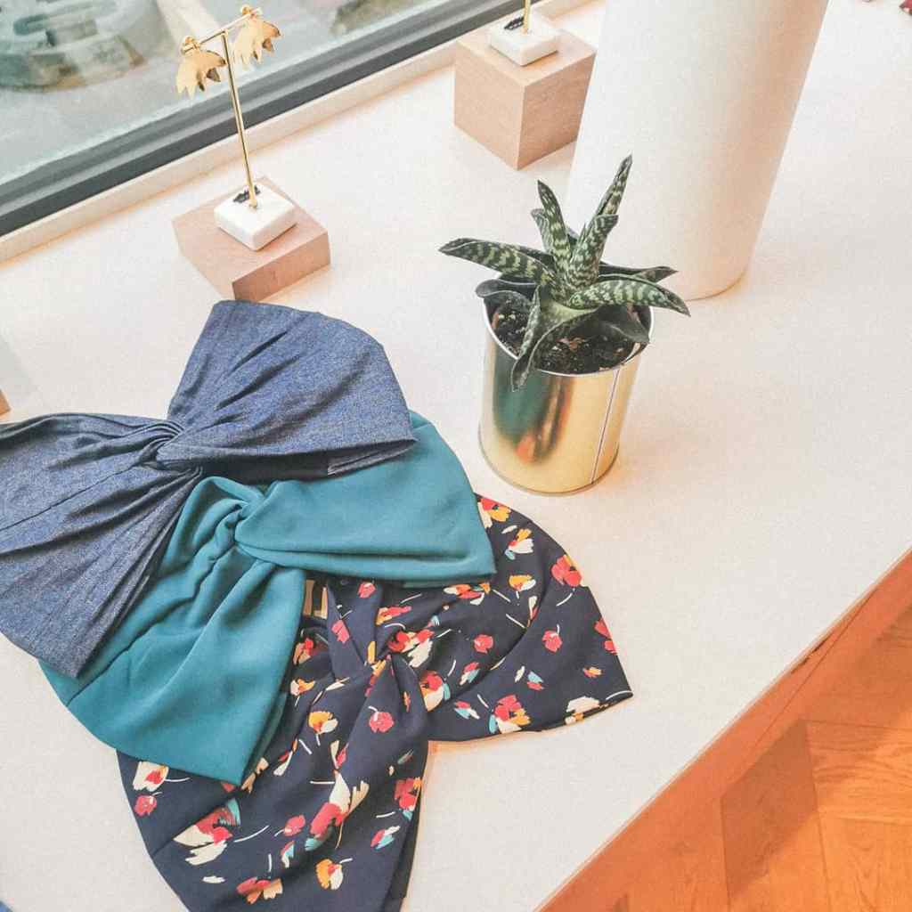 Si vous n’êtes pas fan du modèle turban (ça peut arriver), la boutique propose également des headbands (CANONS) et … des bonnets ! Mais attention, des bonnets stylés, jouant sur un devant et un arrière travaillés et qui se déclinent en coloris et motifs joyeux (ces derniers sont une exclu boutique). Outre les headbands et les turbans, Indira de Paris propose également des chouchous foulard, la grande tendance du moment ! Excepté qu’ici le foulard peut se défaire du chouchou et se porter indépendamment. J’adore l’idée. Côté accessoires on retrouve de magnifiques bijoux réalisés eux aussi… à la main ! Je peux vous dire qu’ils sont canons, peu cher eux aussi puisque la plus grosse des pièces n’excède pas les 120€. Ah, dernier petit mot sur la boutique elle même qui est un véritable écrin de bien-être et de douceur. C’est simple je n’avais plus envie de la quitter ! Un grand bravo à la créatrice et à son équipe qui ont su développer une véritable identité autour d’un concept innovant, accrocheur, et plaisant !
